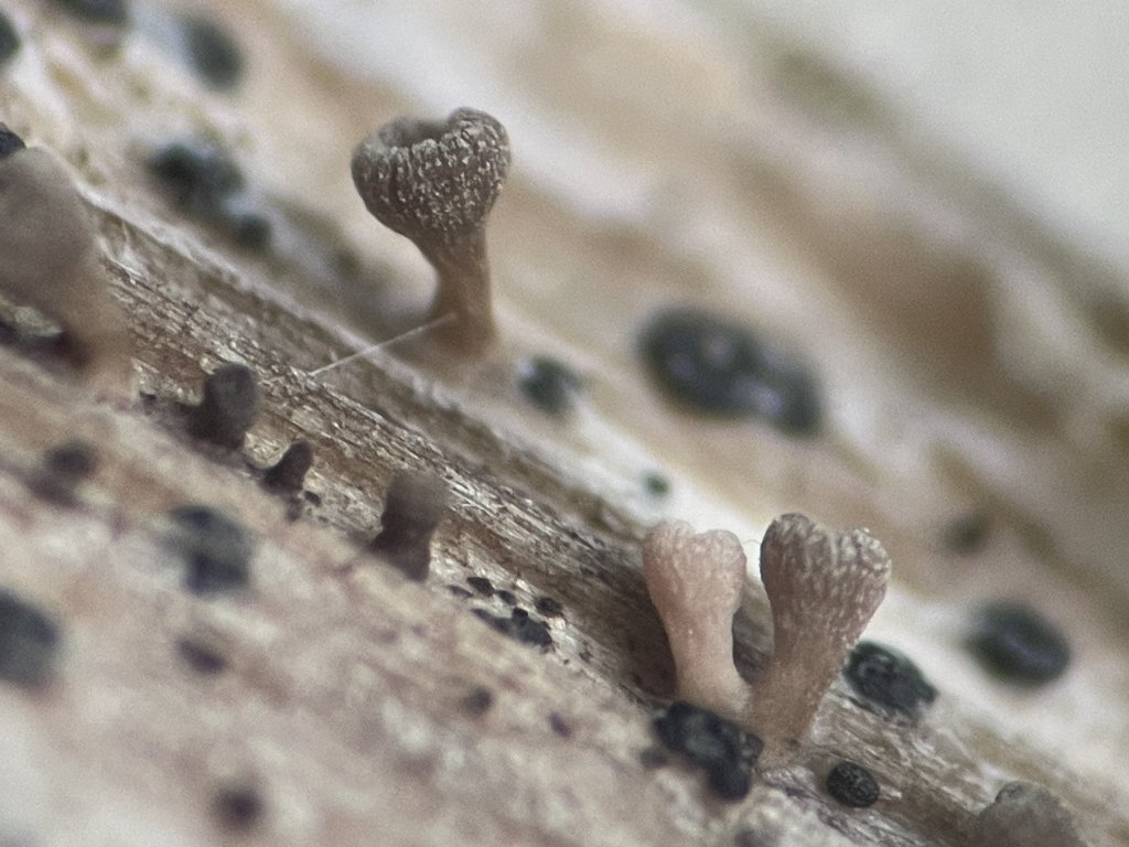Und zum Schluss noch etwas Unbekanntes auf dem selben Doldenblütler wie zuvor die Heterosphaeria. Mikroskopisch bin ich bisher noch nicht recht weiter gekommen, werde es aber die nächsten Tagen noch einmal versuchen. Vielleicht gibt es aber auch schon einen Tipp von euch.