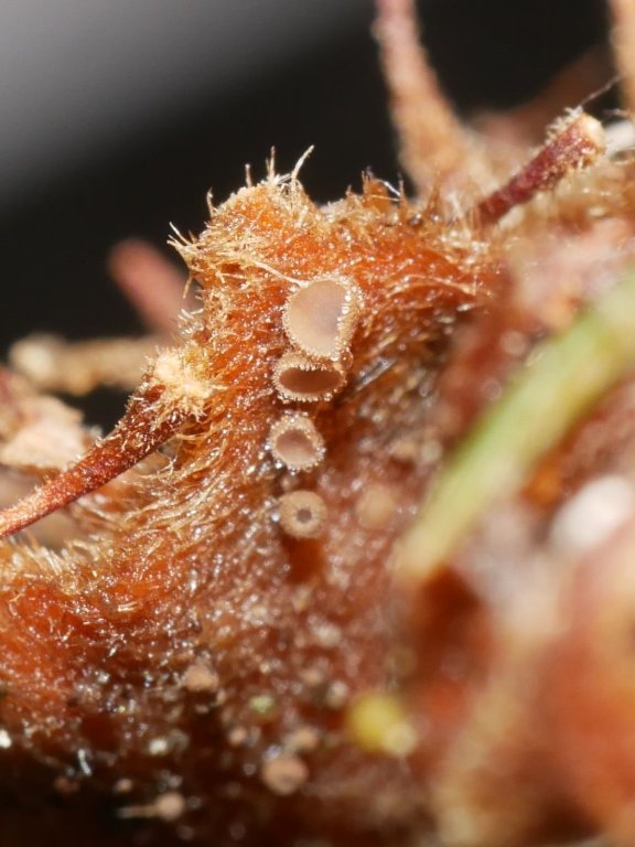 Gerhard hat in halb geöffneten Buchen-Früchten, sog. Cupulae, diese winzige Becherchen entdeckt, die sich bald als diese Art entpuppten (nach Laessoe & Petersen Fungi of temperate Europe Vol. 2, p. 1381 bestimmt)