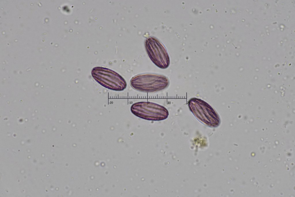 Die Sporen violett, ellipsoid, längs gefurcht [18.3-19.6] x [9.1-9.4] um groß, und haben einen Quotient von [2.0-2.2].
