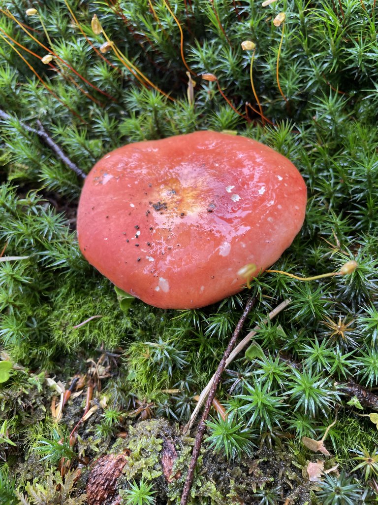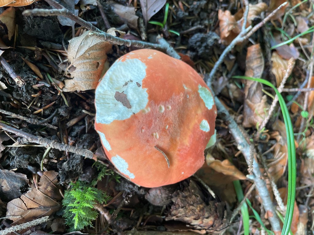 Ist das der Zinnoberrote Hart-Täubling (Russula lepida), der auf der Fundliste angeführt ist? Du hattest diesen zur Bestimmung ja mit genommen.