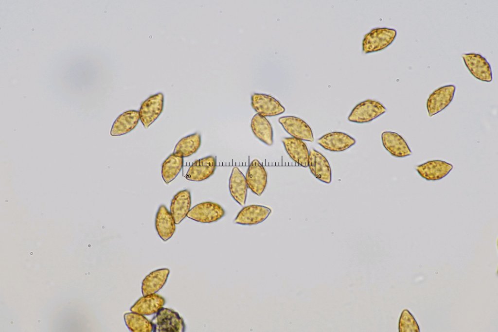 Die Sporen sind zum ersten Exemplar sehr ähnlich. Auch zitronenförmig, aber mit 10.3-11.4 x 5.6-6.1 um (Q = 1.7-1.9) eine Spur größer.