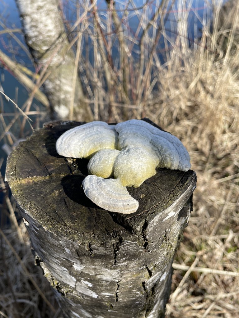 Auf totem Birkenstumpf.