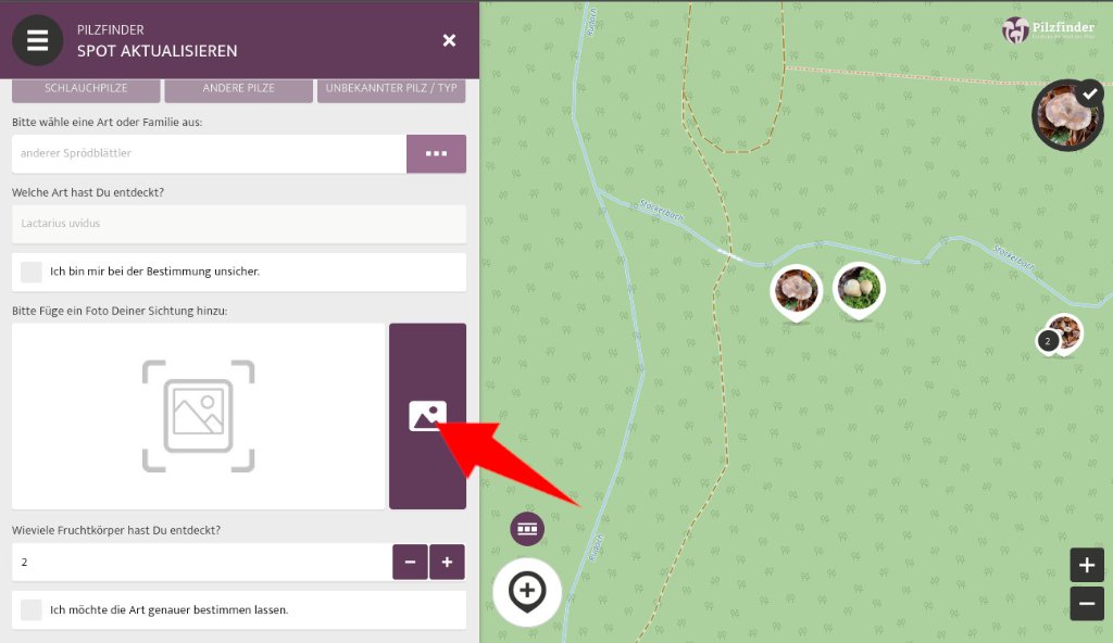 In den meisten Fällen macht es Sinn, ein weiteres Foto zum Fund hinzuzufügen, auf denen zum Beispiel die Unterseite vom oder der Querschnitt durch den Fruchtkörper dargestellt sind.