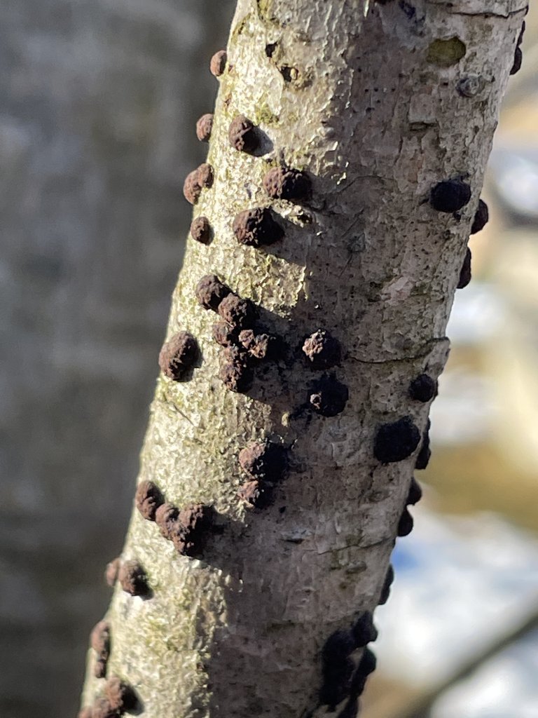 Auch nicht bestimmen konnte ich den Fund auf dem Eschentrieb. Sieht für mich ebenfalls nach Konidien aus.