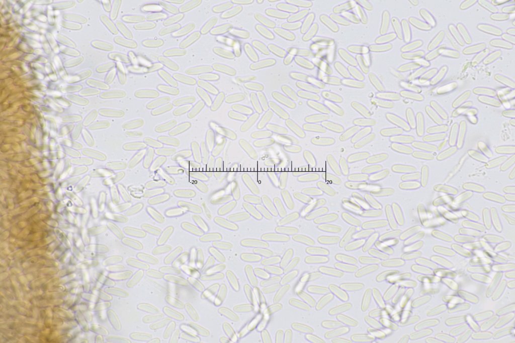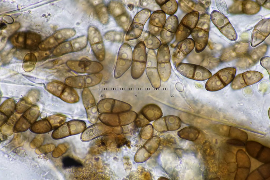 Sporenmaße: [ 19.5-22.0-24.9 ] x [ 6.8-8.0-8.5 ] Q = [ 2.7-2.8-3.2 ] N = 23 Sporen: gelbbraun, 4-6 Septen, auch 2-3 Längssepten, fast muriform