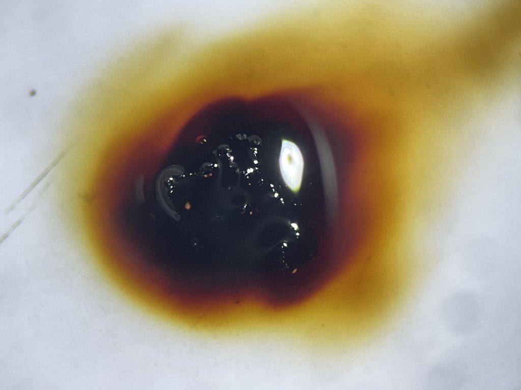 Auf totem Eschenast. KOH-extrahierte Pigmente zitronenfarben.
