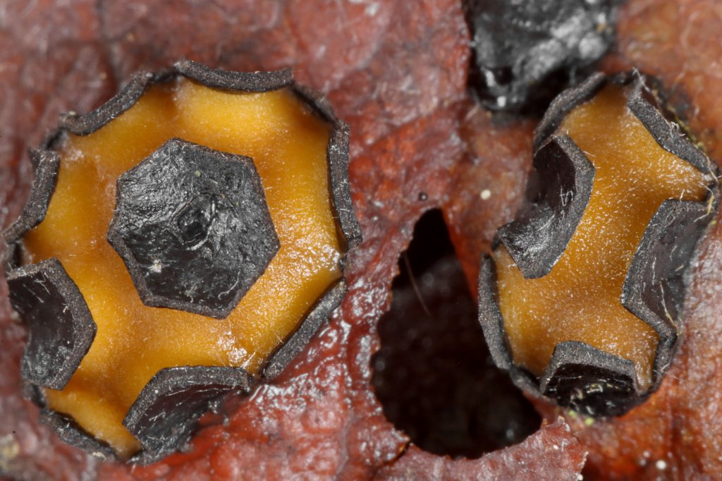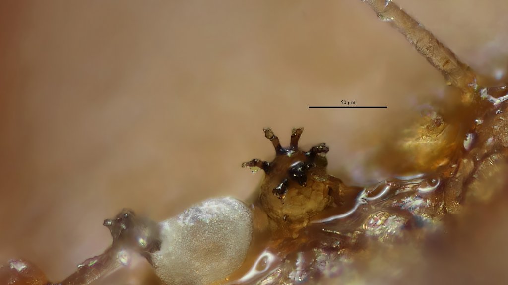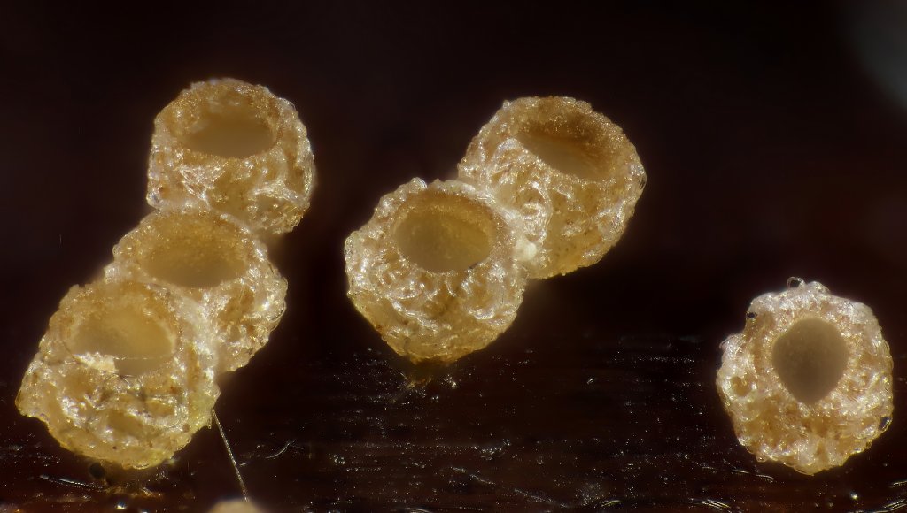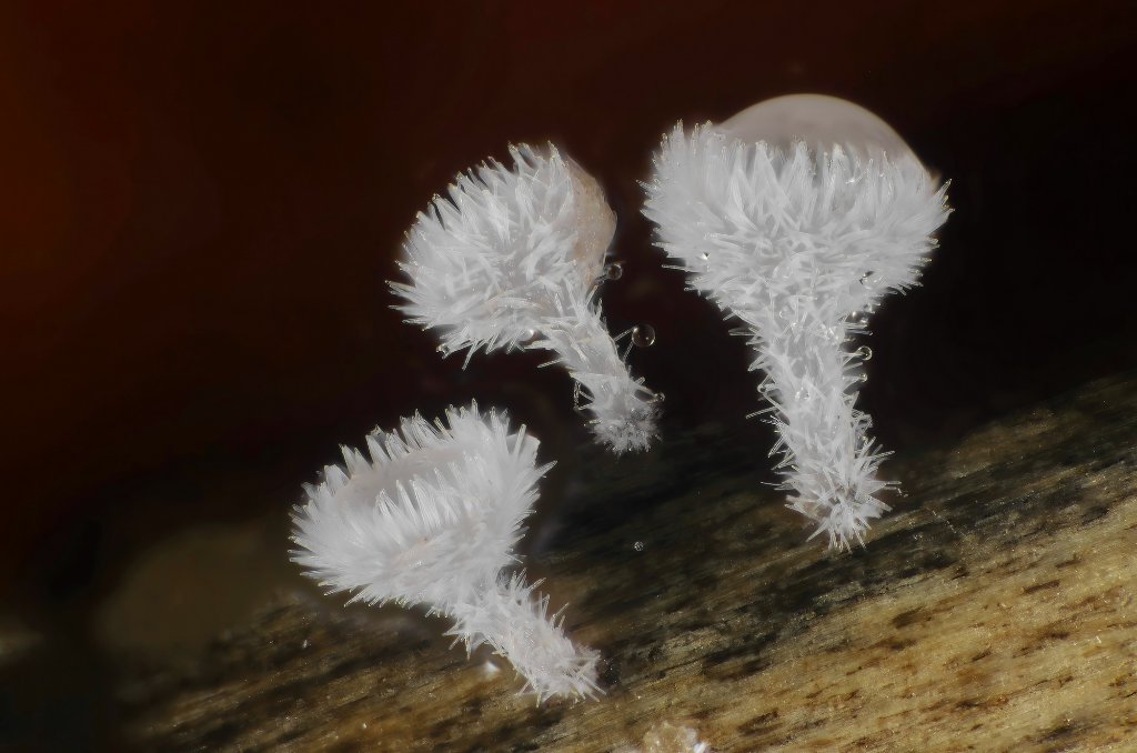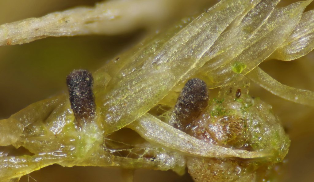 Sehr kleine Fruchtkörper (weniger als 100 µm) + verzweigende Borsten auf der Fk-Oberfläche oder um die Mündung herum führen zu den Gattungen Wentiomyces, Taphrophila und Trichosphaerella (Sordariomycetes). Die Unterscheidung ist simpel: