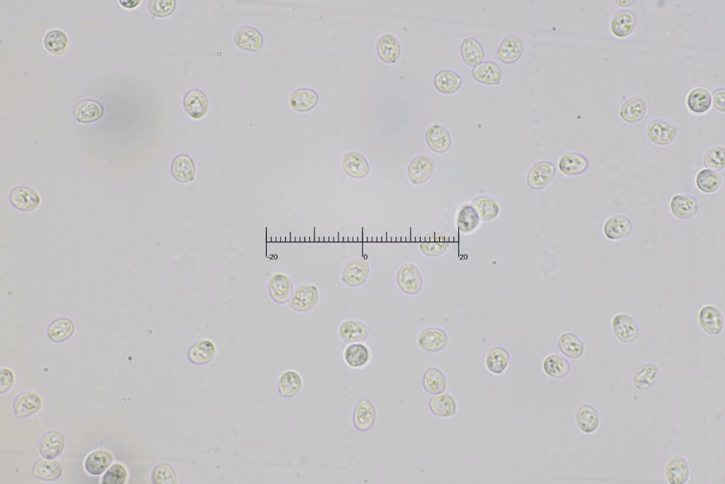 Das Sporenpulver ist weiß und die Sporen sind 5.7-6.3] x [4.4-4.9] um groß, Q = [1.3-1.3], N = 21;