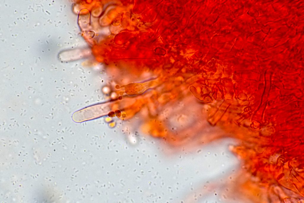 Bei den von mir beobachteten Zystiden dürfte es sich um den Typ A2 (tubular) handeln. Diese sind 6-7 um breit:
